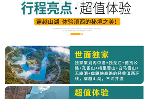 【超值体验】:五大特色体验: ①神域丙中洛,天境之地独龙江,寻找与世隔绝的纹面女;②秘境之地孔雀山轻徒步,感受隐世之美;③探秘上帝滴落香格里拉的一滴眼泪-无底湖,看高原上的万千风情;④徒步全球十大经典路线之一的中虎跳高路精华段,用脚步丈量世界。⑤打卡halfway中途客栈网红平台,以及听涛度咖啡,留下人生照片,定格最美瞬间!
