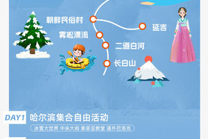哈尔滨+亚布力+雪乡+长白山+延吉 +雾凇岛7天6晚