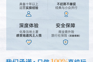 【成团说明】28客人满团,8人以内司机兼向导(含8人);8人以上安排1名资深领队
