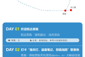 注:如果下大雨,徒步路线无法行走,则领队有权根据情况调整第2-4天行程顺序; 如考虑到安全原因,则有权调整为恩施景区,参考梭布垭石林景区。