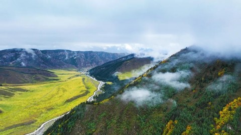 沿途河流蜿蜒流淌,映照着万千风景,阳光透过云层,天空湛蓝透明仿佛能摸到它的边缘。远处山峦高耸,像巨人守护一方平安。我们缓缓行走其间,你会找到内心的宁静和前所未有的安全感,人与自然的界限变得模糊。每一位淳朴的牧民,可爱的牛羊,盛开的野花,都能轻易驱散你所有的焦虑和不安,带来洗礼与重生。