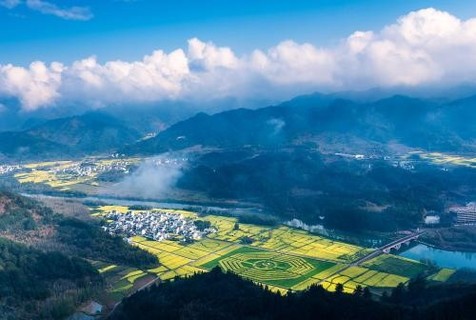 油菜花期,齐云山山脚下的八卦田油菜花盛开了