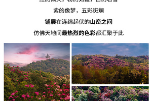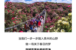 早餐后将乘车前往百里杜鹃景区,首先映入眼帘的是景区大门处极具特色的杜鹃造型建筑,打卡留念后,顺着主游步道前行。此时,漫山遍野的杜鹃花逐渐出现在眼前,花色丰富,有热烈奔放的红色、淡雅清新的粉色、高贵神秘的紫色,花朵形态各异,有的含苞待放,有的完全盛开,微风拂过,花枝摇曳,仿佛一片花的海洋泛起层层波浪,空气中弥漫着淡淡的花香,沁人心脾。