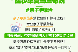 徒步结束后前往【汗苏鲁牧场】(游玩时间约3小时)享用午餐,稍作休息,体验牧民家访,品尝奶茶、蒙语课堂、观蒙古族歌舞等,还有【蒙古服换装】体验,更加深入了解藏族文化和生活方式的独特体验。这里也有很多适合亲子游玩项目,敖包祭祀、蒙古部落、滑沙、马站城堡、草原邮局、蒙古游牧部落快闪、草墩迷宫、网红秋千、草原射箭、滑梯、跷跷板、霍比特小屋、彩虹滑道、旋转秋千、马术表演等。