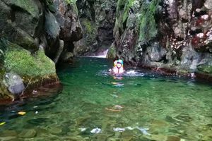 溯溪逆流而上,大家相互帮助,克服重重险阻。一路有很多水潭,大家打水仗,戏水,游泳,跳潭(注意安全),小朋友带好水枪、水桶、捞网,捉捉小鱼挺有意思的。
