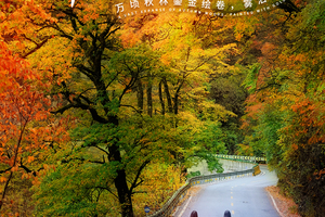 五彩斑斓的树叶交织在一起,宛如一幅天然的巨幅油画。