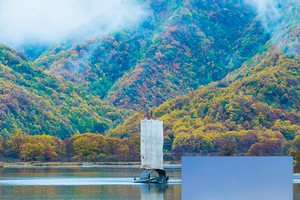 湖水清澈见底,倒映着天空中变幻的云彩和岸边绚丽的秋景。