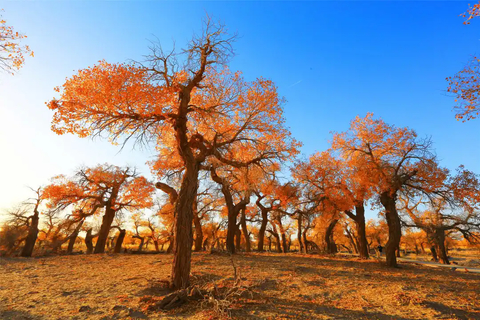 游玩结束后乘坐摆渡车抵达素有“醉美胡杨林之称”的【黑城弱水胡杨林】,将看到沙漠、神水、野胡杨三者天然美景完美结合,其既被赋予“弱水三千,只取一瓢”的爱情主题,又被赐予“胡杨百媚生,陷于弱水情”的千古柔情。