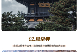 【门票】五台山首道大门票,恒山景区(悬空寺首道大门票+恒山首道大门票+景交车),华严寺门票,云岗石窟门票,应县木塔门票,雁门关门票含景交,悬空村门票,万年冰洞门票;