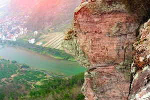 峡谷中有着壮观的丹霞地貌,由十九峰、台头山两组丹霞地貌相峙而成。这里作为《笑傲江湖》、《射雕英雄传》、《少林武王》、《天龙八部》的外景地而名闻全国。