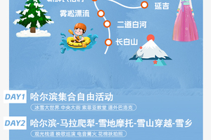 滑雪温泉 雾凇漂流 寒地冬捕 雪山徒步 雪地摩托 马拉爬犁 民俗体验