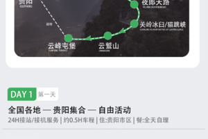 ② 大约下午15:30左右送达贵阳北站、下午16:00左右送达贵阳龙洞堡机场,如当天需要返程的小伙伴一定要购买下午16:30以后贵阳北站返程的高铁动车票或晚上18:00以后龙洞堡机场的返程机票,以免造成赶不上火车或飞机。