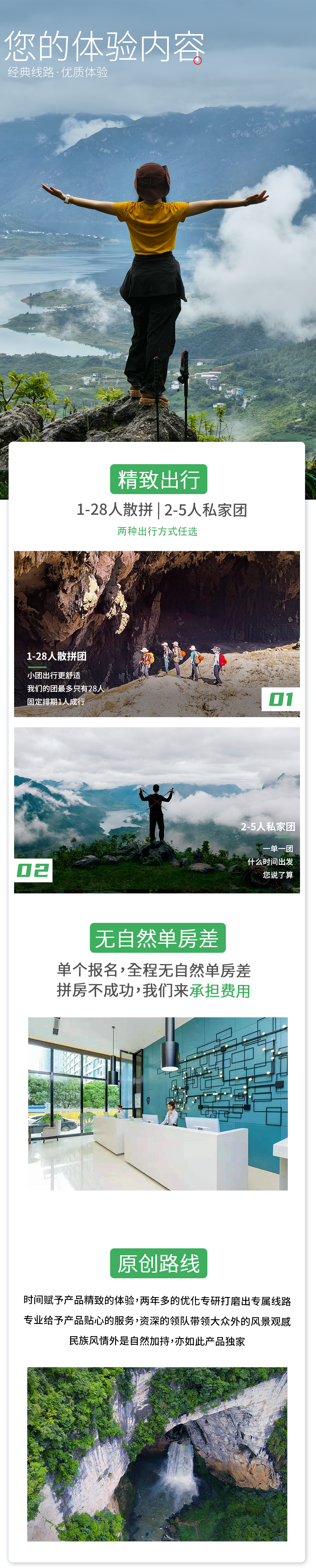 ① 今天的徒步路程约6公里,累计爬升约为350米,瀑布溶洞峡谷风光为主,需要山路,有陡坡路段、雨季道路泥泞,需要穿防滑的鞋子和带备换衣服鞋子。