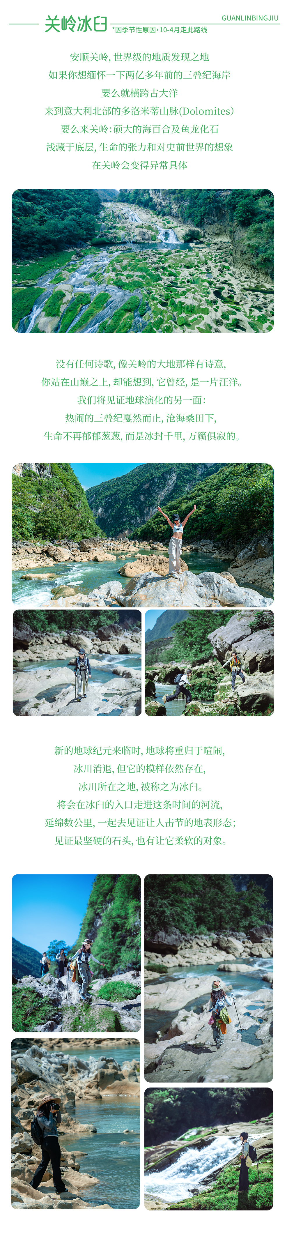 早餐后乘车前往关岭冰臼,徒步冰臼河谷,探秘三叠纪冰川遗迹,中午队员们分享各自带来的美食午餐。后继续徒步,欣赏冰臼风光;游毕后乘车返回安顺酒店。