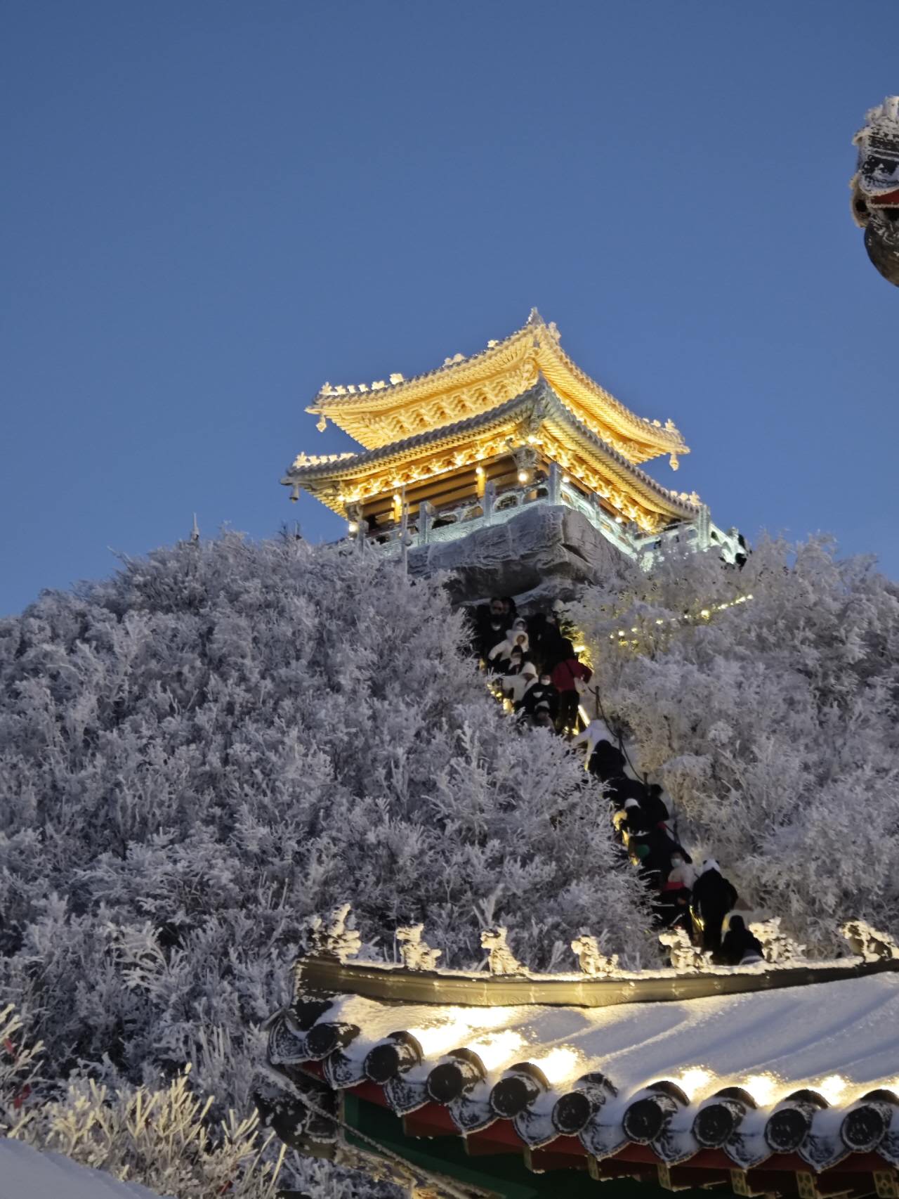之后穿越南天门后,到达【金顶道观群】,金顶道教建筑群依托山顶建筑,均为明清皇家宫殿式建筑。金殿、亮宝台、玉皇顶三座金顶在阳光照耀下辉煌多彩,无愧于“南有武当金顶,北有老君铁顶”的美誉。入住后,我们将在在老君山金顶等一场日落,远处的霞光,金顶的夜景,如此美景,不愧是远赴人间惊鸿宴,一睹人间盛世颜啊。