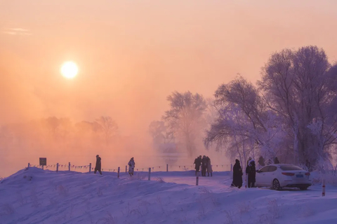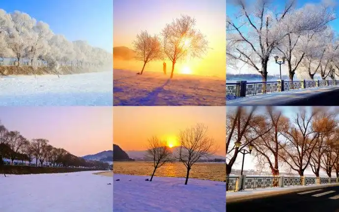 第一缕晨光洒在吉林的街道上,我们的车队已悄然启程,驶向如梦似幻的【雾凇长廊】。沿途的松花江两岸,柳树和松枝凝结了层层霜花,形成举世闻名的【雾凇奇观】。江面蒸腾的薄雾与挂满枝头的晶莹冰晶,在晨光下闪烁着钻石般的光芒,仿佛整个世界都被水晶点缀。