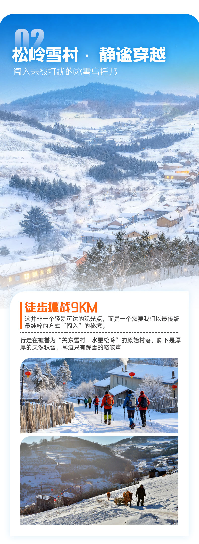 午餐和短暂休整后,我们将用整个下午的时间,通过轻徒步,深度探索这个被誉为 “关东雪村,水墨松岭” 的摄影天堂