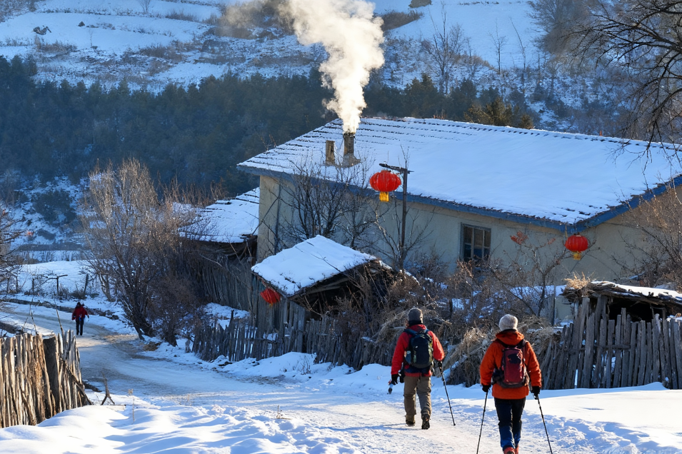 徒步体验:我们大巴车只能将我们送到村口。要真正进入雪村的怀抱,需要我们迈开双腿,踏着厚厚的积雪步行进入。当你的双脚踩在松软的雪地上,发出“咯吱咯吱”的声响,当映入眼帘的木屋、篱笆、玉米垛都覆盖着极具雕塑感的厚雪,时间仿佛在此刻凝固。