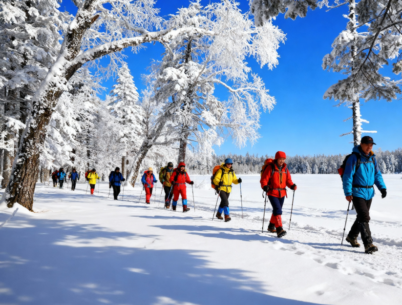 东北冬季严寒(-15℃至-30℃),需备防风雪外套、加厚羽绒服、防水登山鞋、保暖帽、手套及防滑冰爪。
