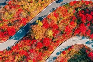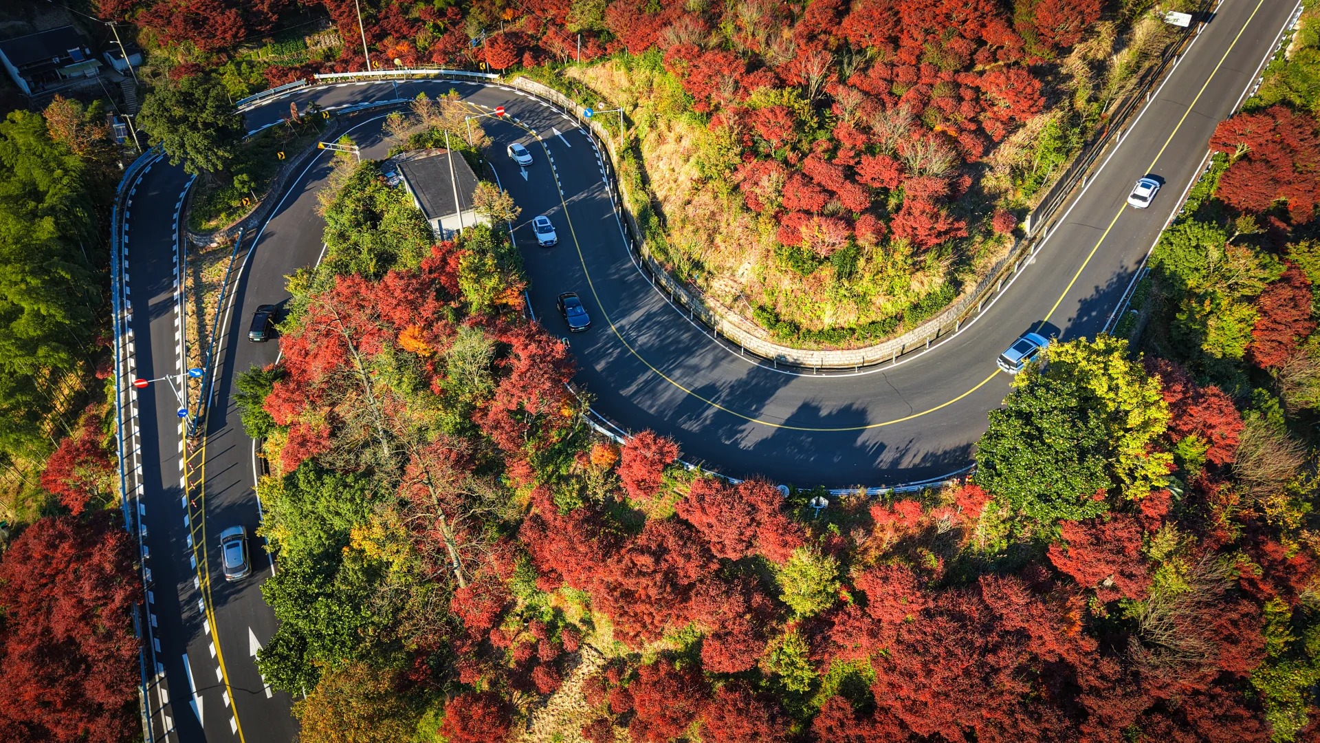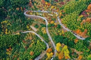 在十一月初至十二月初这个时间段的不同时间点里走入四明山,总是能得到有所不同的秋景。四明山的秋天满是金钱松、银杏、红枫、水杉等变色树种,搭配盘山公路、古村古桥等景致,出片场景丰富。