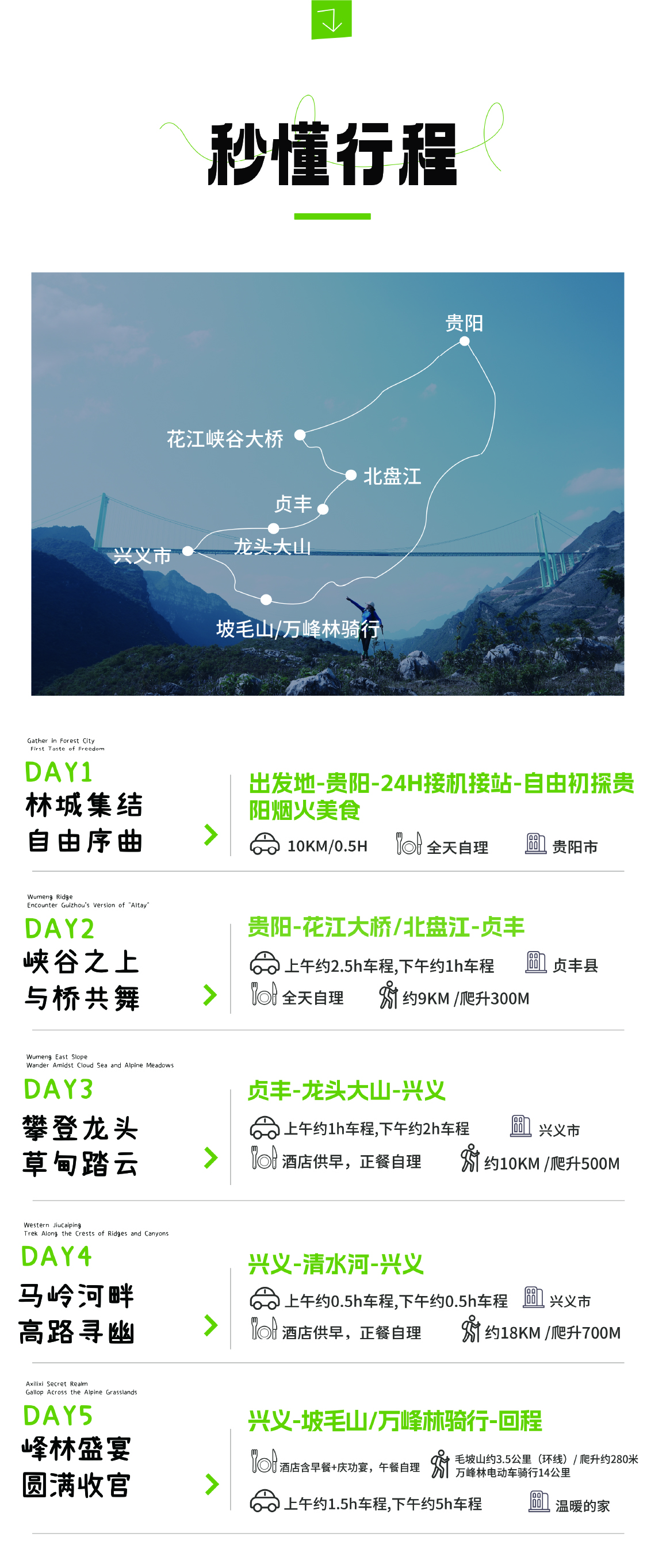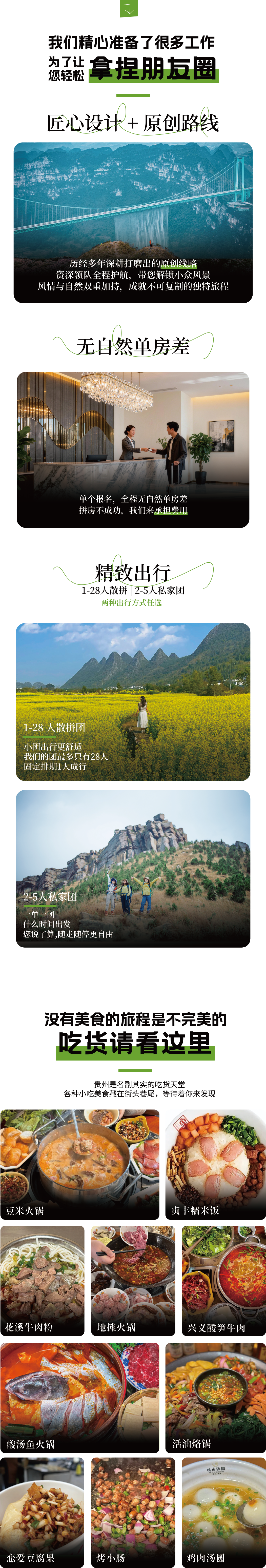 ➂ 如还想继续再兴义游玩或前往云南游玩的小伙伴可选择在兴义解散,兴义自由游玩推荐:万峰林、马岭河峡谷景区、吉隆堡、万峰湖、玉皇顶、峰林布衣等。
