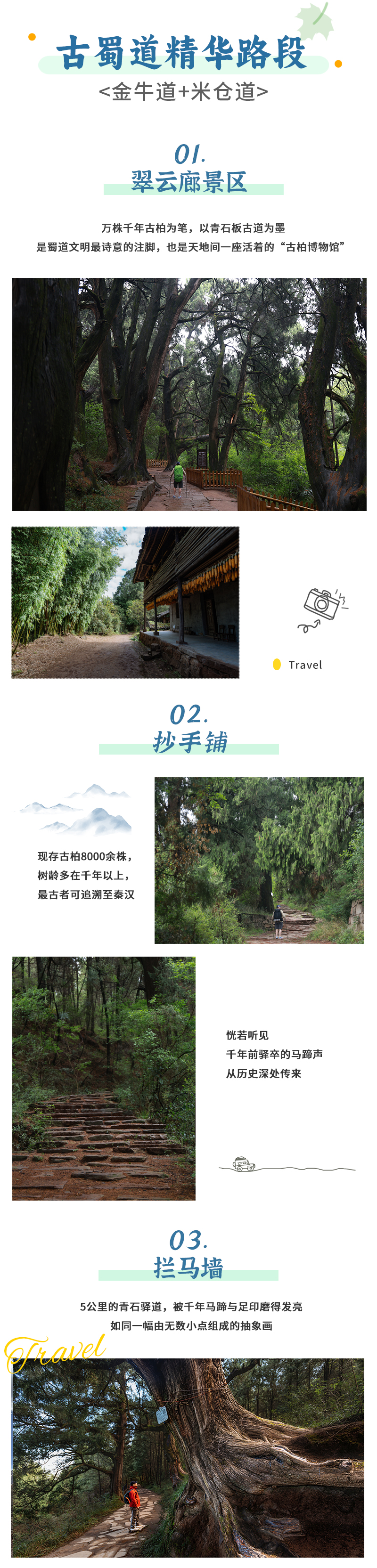 “中国三大古蜀道”精华路段(金牛道+米仓道)+秦蜀古道起点,合理安排徒步强度,新手也能毕业进阶线路。