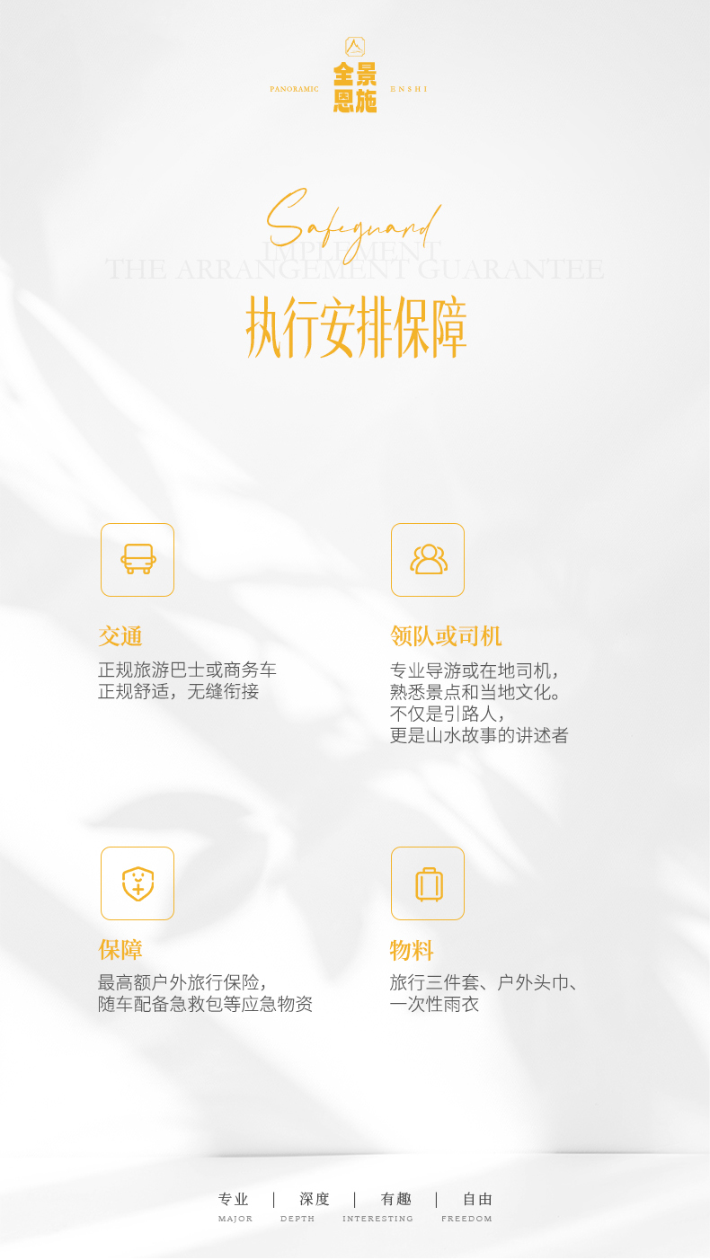 2.【酒店入住】每日12时以后,前台说明“全景恩施+姓名”办理入住,出示证件,押金自理。