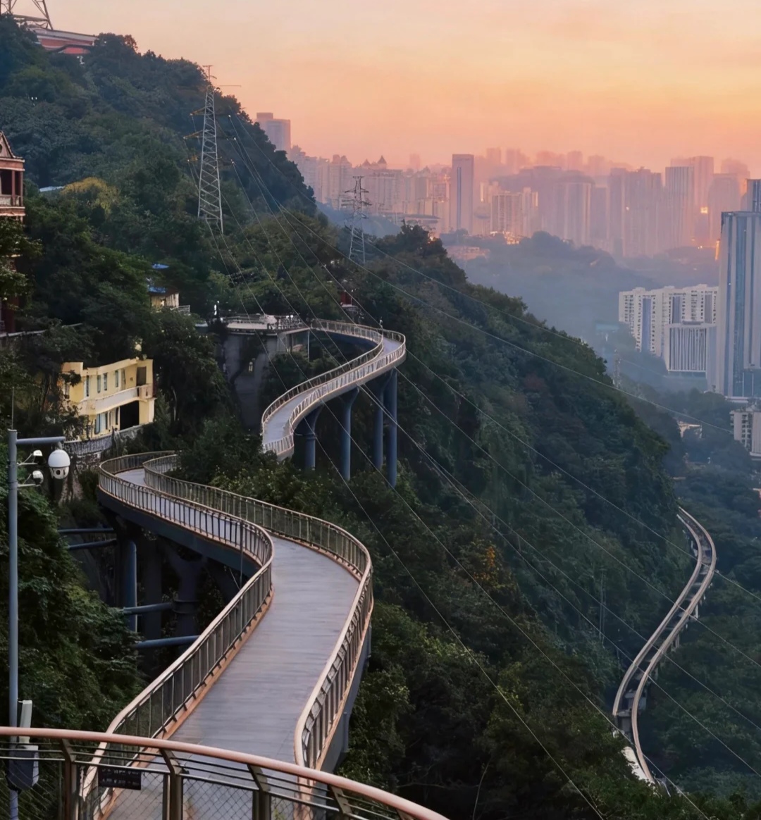 早上08:00点起床洗漱 吃早餐 ,集合乘车前往半山崖线步道西起沙坪坝区平顶山公园,东止渝中区李子坝抗战遗址公园,串联起红岩支线、三层马路支线、国际城支线、天地湖支线等,每条支线都有出入口,充分展现了重庆立体城市山水人文特色。下午16:00点回程重庆酒店