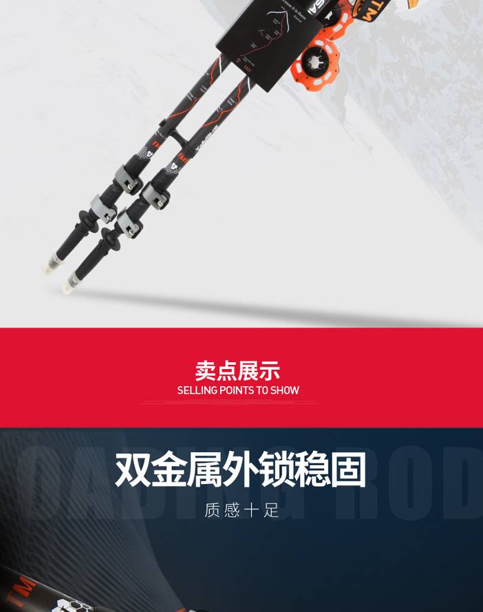 珠峰登山杖-三节伸缩外锁铝合金户外越野徒步雪山杖