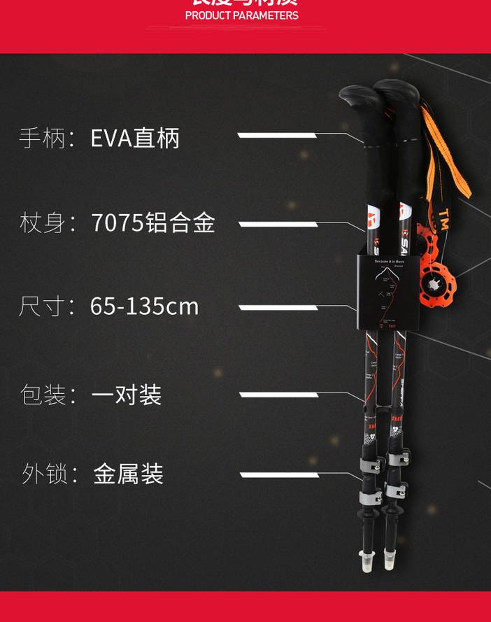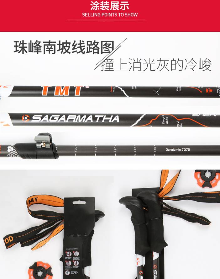 珠峰南坡ET登山杖-高档直柄伸缩铝合金拐杖专业外锁户外登山装备