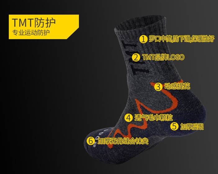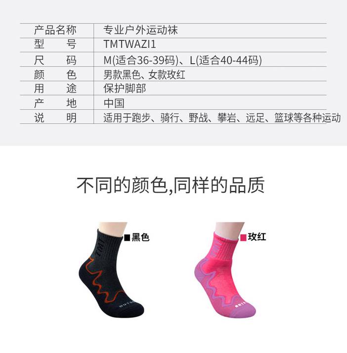 TMTOD户外运动登山袜-中筒袜毛巾加厚吸汗跑步COOLMAX袜子运动足球羽毛球男女士
